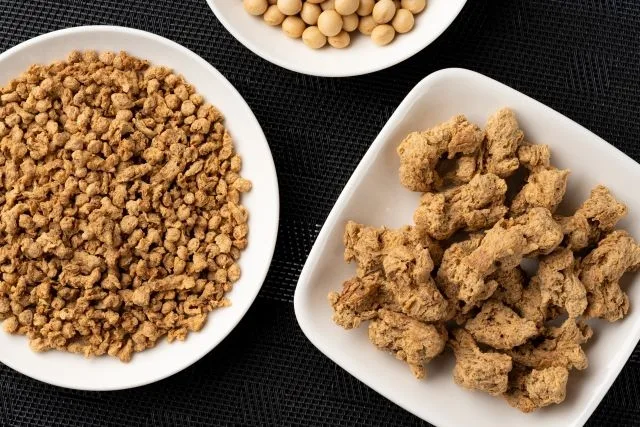 濃い味付けをしないお粥では特に悪目立ちすると思われますし、エアプロテインやソレインはほぼ無味らしいので、それに寄せるならできる限りクセのない大豆ミートが理想的。